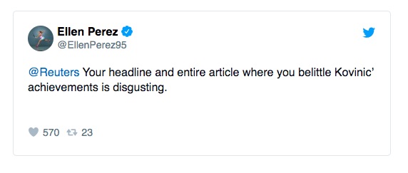 « Votre titre et tout l’article où vous minimisez les réalisations de Kovinic sont dégoûtants » a expliqué Ellen rappelant les résultats obtenus par Danka.