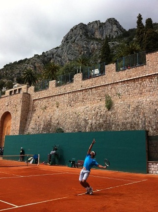 Rafael Nadal nous fait partager ses premières balles d’en­traî­ne­ment à Monte Carlo. Sur cette photo, à retrouver sur sa page Facebook, Rafa se chauffe au service. L’Espagnol est tout heureux de refouler les courts exté­rieurs après avoir dû s’en­traîner en indoor, dimanche, pour cause de pluie.