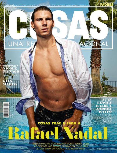 Rafael Nadal est en couverture du magazine péruvien Cosas. Il y apparait dans une piscine, torse nu, chemise ouverte et trempée. Avis aux amateurs et aux amatrices…