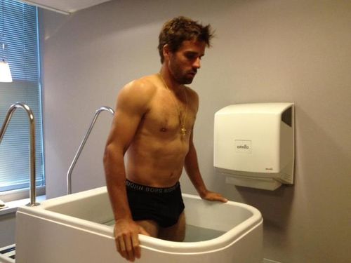 Après avoir joué plus de 4 heures au premier tour, Arnaud Clément a fait son maximum pour récupérer de ses efforts lors de son day‐off d’hier. C’est qu’à 34 ans, il est encore plus difficile de se remettre d’une pareille fatigue physique ! L’Aixois a ainsi multiplié les séances de messages ou de cryo‐bain, dont voici une photo postée sur son Facebook.
