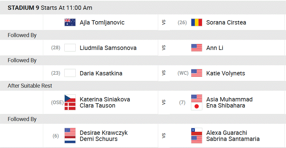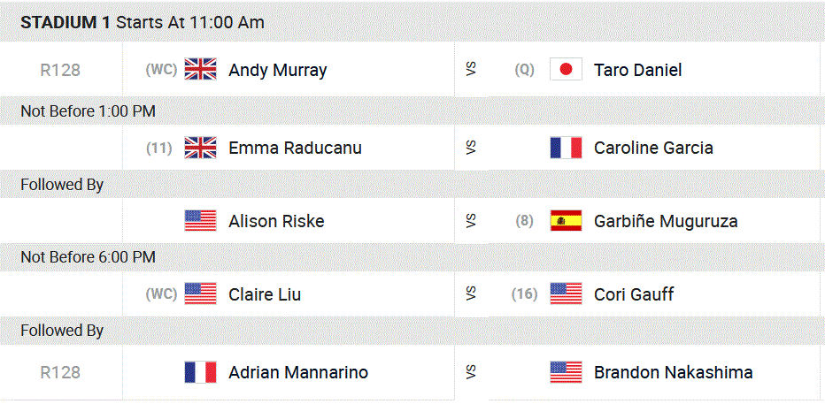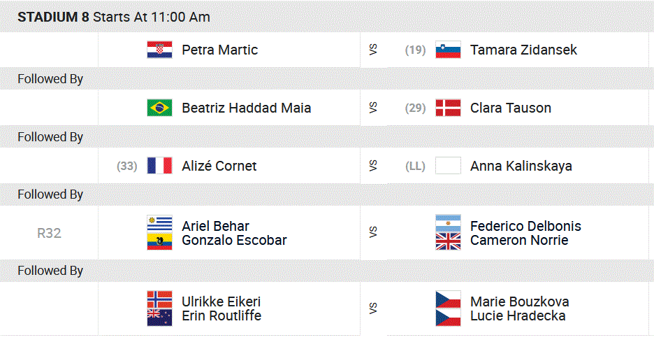 Chez les filles, Caroline Garcia tentera d’enchaîner, après sa belle victoire face à Yastremska, face à la nouvelle star du tennis féminin, la Britannique Emma Raducanu. Une rencontre prévue sur le Stadium 1. Enfin, Alizé Cornet va essayer d’oublier sa contre‐performance lyonnaise face à la Russe Kalinskaya.