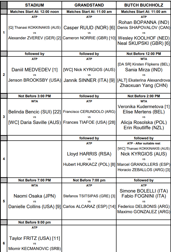 Chez les dames, seulement deux rencontres sont prévues avec Naomi Osaka face à Danielle Collins et Belinda Bencic contre Daria Saville. Ça promet !
