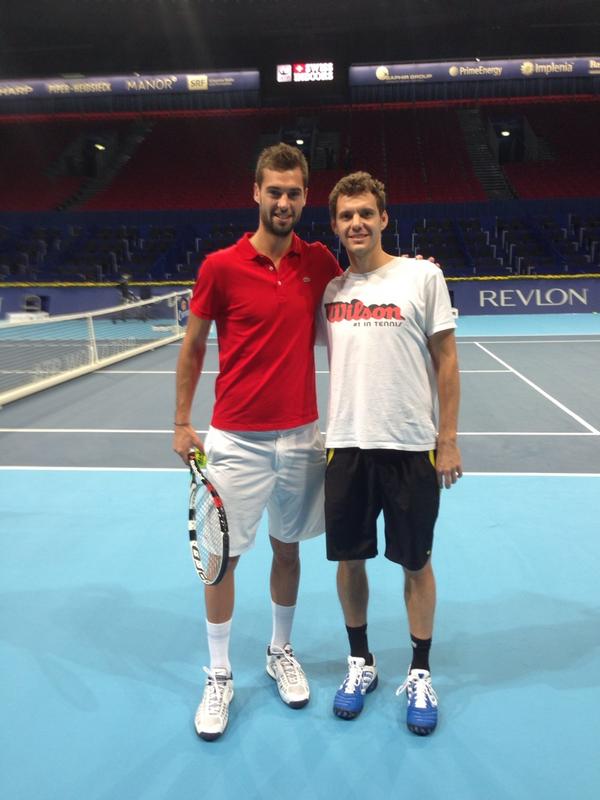 Benoît Paire et Paul Henri Matthieu ont actuellement trois points communs. D’une ils se sont entraînés tous les deux ensemble aujourd’hui. De deux ils sont en quarts de finale à Bâle. Et de trois, ils vont chacun affronter un Federer. Enfin presque. Benoît Paire va certes disputer une rencontre de rêve face au vrai, au grand Roger Federer. Mais Paul‐Henri Matthieu va lui jouer contre Grigor Dimitrov. Celui qu’on surnomme quand même « le Federer bulgare » ou encore le « Baby Federer ». « Échauffement avec Paulo aux couleurs de la Suisse!!!maintenant petite sieste!! » a écrit Benoît sur Twitter.
