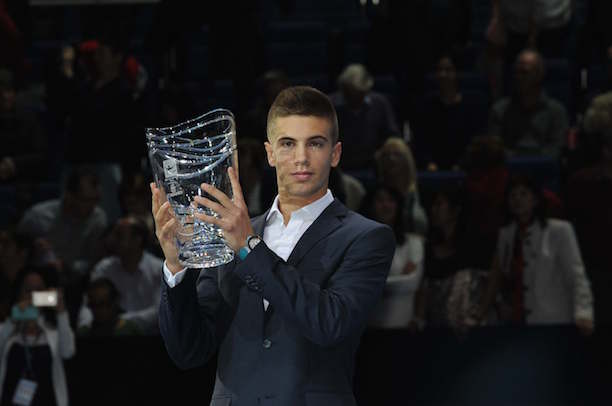 Photo prise lors de la remise du trophée ATP Star of Tomorrow au Masters de Londres 2014.