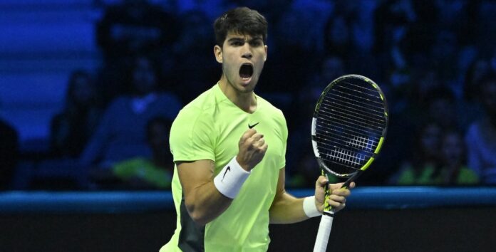 Pour se qualifier en demi‐finales de ce Masters 2023 à Turin, Carlos Alcaraz devait battre un Daniil Medvedev, déjà qualifié mais qui avait promis de se donner à fond contre l’Espagnol, contre qui il restait sur une victoire retentissante à l’US Open, avec dans le viseur 200 points ATP supplémentaires et 390 000 dollars.