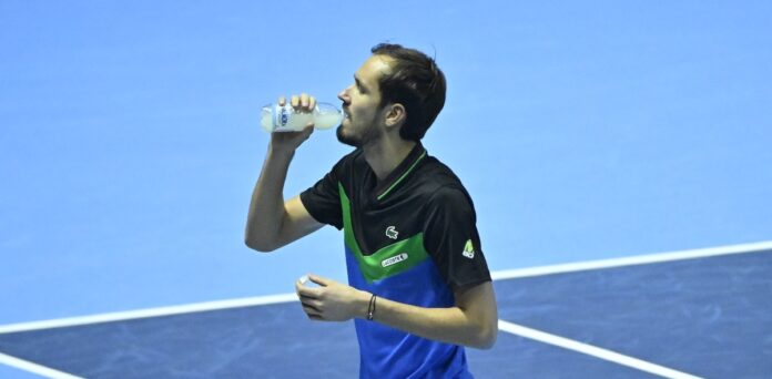 Toujours positionné très loin de sa ligne de fond en retour de service, Daniil Medvedev a évoqué avec le sourire en conférence de presse le grand espace sur le court central à Turin, où se déroule actuellement le Masters.