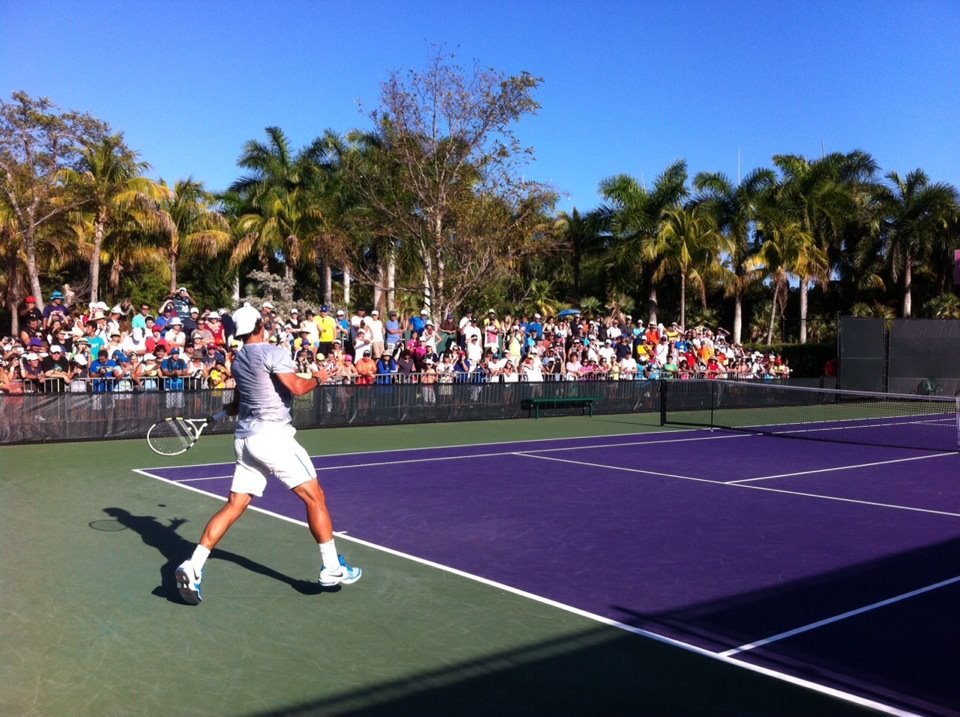 Quand Rafael Nadal s’entraîne, ce n’est pas à huis‐clos. La preuve en image, avec la petite foule qui se masse pendant que l’Espagnol distribue des gentils parpaings à ses partenaires.