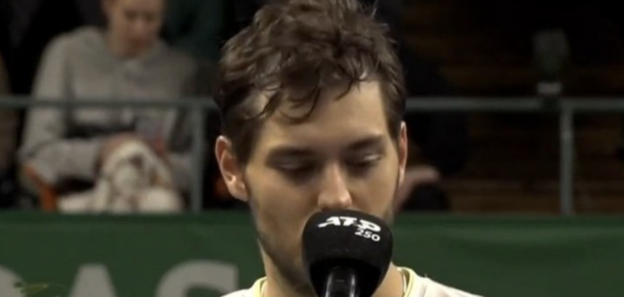 « Bonsoir à tous. Tout d’abord, ce fut une semaine extraordinaire pour moi. Pour la première fois, j’ai joué une finale dans un tournoi ATP. Je voudrais féliciter Gael. Tu as passé une semaine extraordinaire ici. J’ai essayé de faire de mon mieux, mais tu as retourné tout ce que je te proposais. C’est ton titre. Félicitations. Je voudrais dédier ceci à mon entraîneur décédé cette année. »