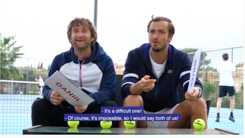 On avait déjà perçu cela lors de notre reportage à Cannes, mais il existe une vraie connexion entre Gilles Cervara, élu meilleur coach de l’année en 2019 par l’ATP et le joueur russe Daniil Medvedev. Cela nous l’avions remarqué dès nos premiers échanges avec l’entraineur tricolore. Cela tombe bien car l’équipementier de Daniil, Tecnifibre vient de publier une vidéo plus que sympathique où les deux « amis » s’amusent à un petit jeu de questions/réponses très instructif pour comprendre leur fonctionnement.