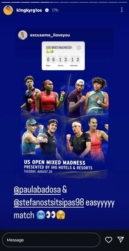 « Match faciiiiile ! », a écrit Kyrgios en tagguant Stefanos Tsitsipas et Paula Badosa.