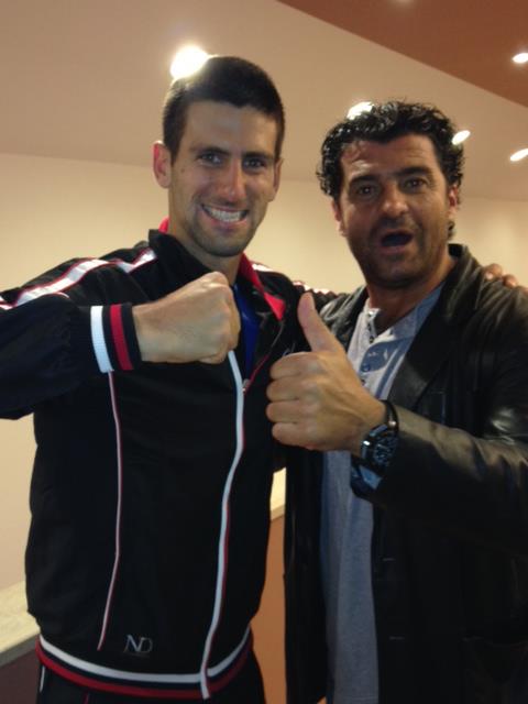 Novak Djokovic a pu rencontrer le skieur Alberto Tomba ce week‐end à Rome. Cet Italien, retraité depuis 1998, est considéré comme l’un des plus grands champions de ski de l’histoire (trois médailles d’or olympique, deux en argent, deux titres mondiaux notamment). La photo :