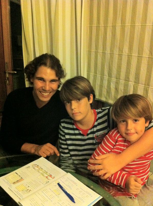 Rafael Nadal a du temps pour lui avec sa blessure. Entre deux séances d’entraînement physique, le numéro quatre mondial en profite pour diversifier ses activités. En promotion pour Poker Stars, il a aussi réservé un peu de temps pour sa famille. Et plus précisément pour ses deux petits cousins ! Le Majorquin a visiblement aidé les deux jeunes à faire leurs devoirs, tout simplement. On peut être un grand champion et garder les pieds sur terre !