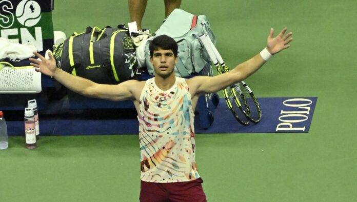 Tombeur d’Alexander Zverev en trois lors des quarts de finale de l’US Open, Carlos Alcaraz a justement célébré exactement comme l’Allemand l’avait fait au tour précédent après avoir battu Jannik Sinner au terme d’un gros combat.