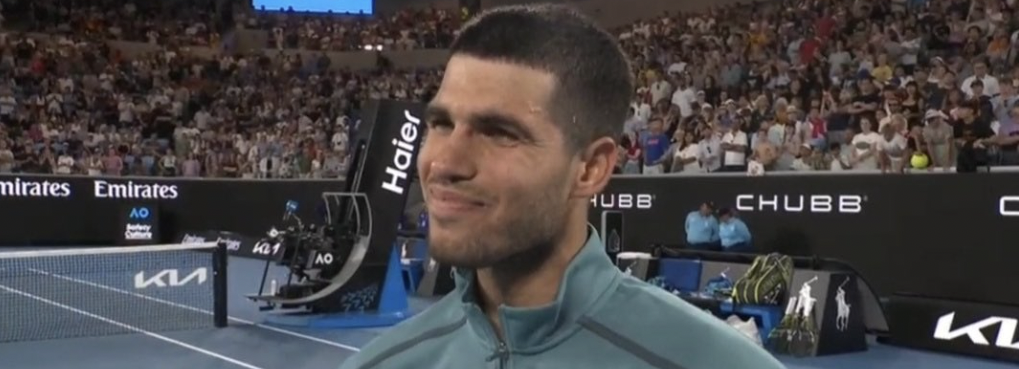 Après sa solide victoire contre Alexander Shevchenko (77e) au premier tour de l’Open d’Australie, Carlos Alcaraz a été interviewé sur le court par l’ancien joueur John Millman. Ce dernier a évoqué la passion du jeune espagnol pour le golf, qu’il partage avec Rafael Nadal, et l’a même invité à classer les plus beaux swings, offrant un moment léger et amusant au public.