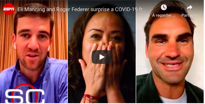 On l’a dit, Roger Federer ne s’est pas souvent montré pendant ce confinement. Quand il l’a fait, cela était toujours juste et simple. Hier, pour la fête des mères « internationale », il a donc offert un cadeau unique à l’une d’entre elles, une infirmière, qui, dés le début de la crise du Covid‐19, a eu un comportement exemplaire. Inutile de préciser qu’elle a été surprise de pouvoir échanger quelques mots avec la star suisse.