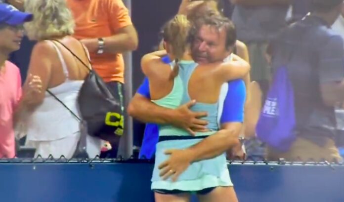 Qualifiée pour le tableau final, la jeune joueuse tchèque Sara Bejlek (16 ans) était heureuse et son team également, un peu trop même quand on voit les images de son père lui « tapotant les fesses » comme le fera son coach par la suite.