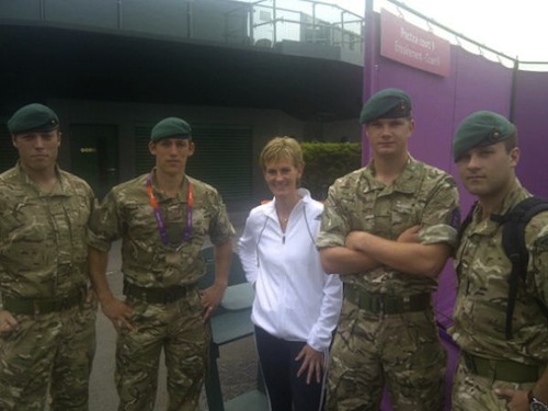 Judy Murray, la maman de l’Ecossais le plus célèbre du circuit, est une véritable fan des réseaux sociaux. Pas une semaine ne passe sans que la quinquagénaire ne tweete. Après avoir vanté les corps de « Deliciano » Lopez (elle l’avait surnommé ainsi) et de Guy Forget, la maternelle d’Andy a cette fois pris la pose au milieu de quatre représentants de l’armée chargés de faire la sécurité à Wimbledon en vue des JO. Le tout avec un commentaire aussi drôle qu’intéressant… Alors Judy, c’est pas mieux que Deliciano ça ?