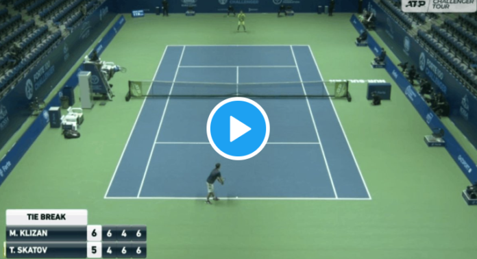 C’est ce qui s’appelle une victoire à l’expérience. Et on peut dire qu’entre le Slovaque Martin Klizan (31 ans) et le Kazakh Timofey Skatov (21 ans), s’il y a bien une chose qui les diffère, c’est l’expérience. Car au niveau du jeu, bien malin celui qui aurait su annoncer le vainqueur alors que les deux rivaux se tenaient au tie‐break du 3ème set, 6–5 Klizan. Lequel en profite pour provoquer ouvertement son jeune adversaire en se plaçant en plein centre du court pour retourner, laissant grand ouvert le côté extérieur. Et le pire, c’est que ça marche !