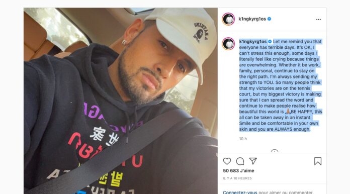 L’Australien qui a été boulversé par la crise liée au Covdi‐19 a donc tenté de se transformer en philosophe, on vous laisse le soin de juger de la qualité et la pertinence de son discours : « Permettez‐moi de vous rappeler que tout le monde passe des jours terribles. C’est bon, je ne peux pas insister assez sur cela, certains jours, j’ai littéralement envie de pleurer parce que les choses sont accablantes. Que ce soit au travail, en famille, sur le plan personnel, continuez à rester sur la bonne voie. Je vous envoie toujours ma force. Tant de gens pensent que mes victoires sont sur le court de tennis, mais ma plus grande victoire est de m’assurer que je peux passer le mot et continuer à faire comprendre à quel point ce monde est beau is SOYEZ HEUREUX, tout cela peut être emporté dans un instant. Souriez et soyez à l’aise dans votre peau et vous en avez TOUJOURS assez »