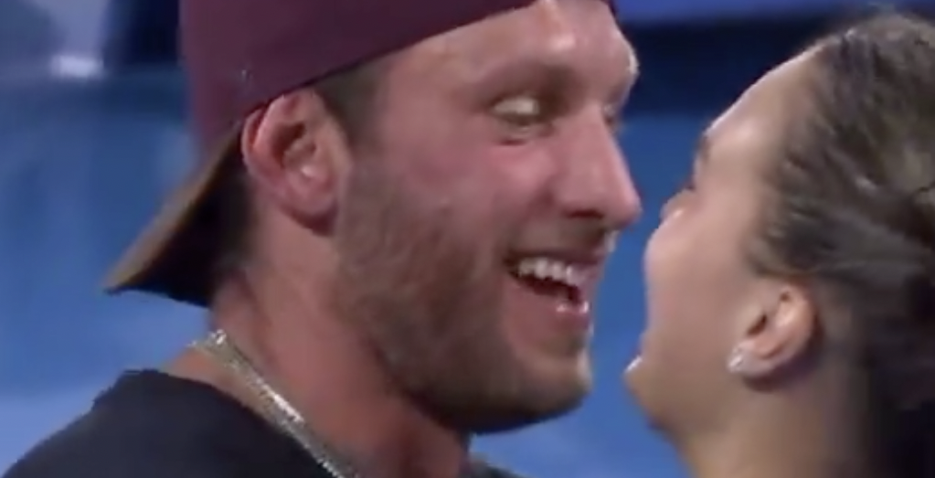 Après sa victoire en finale contre Paolina Kudermetova (4−6, 6–3, 6–2), la numéro 1 mondiale a pu partager sa joie avec son compagnon, Georgios Frangulis, qui la suit partout dans le monde depuis l’officialisation de leur relation l’année dernière, quelques mois après le décès de l’ex petit‐ami de la Biélorusse.