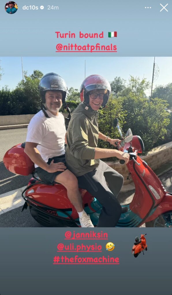 Et il semble que Sinner a décidé de faire le déplacement à Turin d’une manière plutôt insolite. Comme en témoigne une photo publiée sur les réseaux sociaux par son coach Darren Cahill, l’Italien était au volant de la traditionnelle Vespa Italienne.