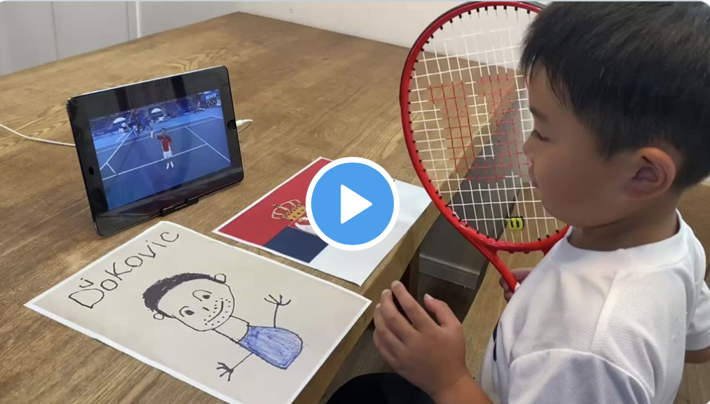 Novak Djokovic annonçait sa participation aux Jeux Olympiques avec une vidéo souhaitant joyeux anniversaire au petit Kojiro Owaki, qui fêtait ses 6 ans. Le numéro 1 mondial avait aussi transmis quelques conseils techniques au papa pour son enfant il y a quelques semaines. Forcément, le jeune garçon est vite devenu un fan absolu de Nole. Il suit tous ses matchs, et célèbre avec lui, comme lui. Magnifique.