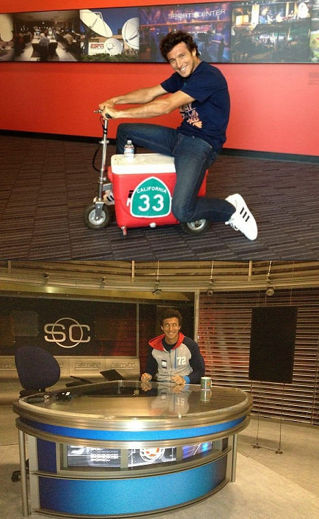 Juan Monaco était envisite dans les locaux d’ESPN, à Los Angeles, hier… Vous pouvez le constater, ce garçon prend la vie avec beaucoup de sérieux…