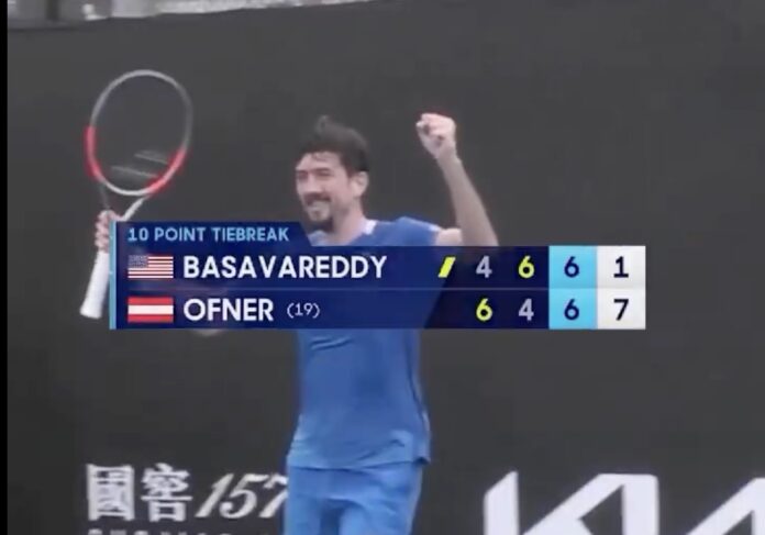Alors qu’il menait 6–1 dans le super tie‐break face à Nishesh Basavareddy, Sebastian a levé les bras comme s’il avait gagné le match alors qu’il avait tout juste fait la moitié du chemin.