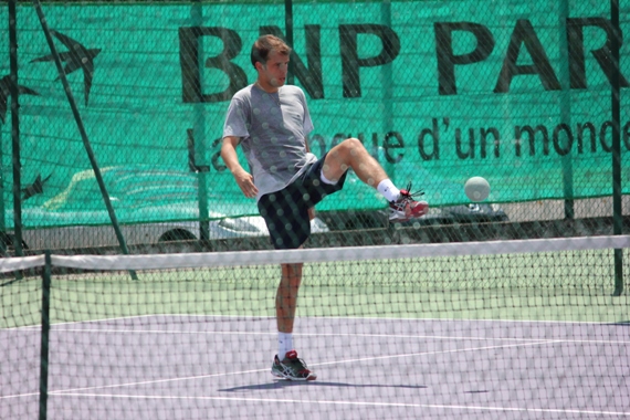 Alors qu’il est engagé dans le tableau principal du Challenger de Guadeloupe, Gilles Muller s’est entraîné ce lundi… enfin seulement une demi‐heure. Le Luxembourgeois a préféré troquer sa raquette contre un ballon de foot pour disputer une petite partie de tennis‐ballon avec son partenaire d’entraînement. L’ancien numéro un junior est‐il aussi doué que son illustre homonyme footballeur Gerd Müller ? Bon, pour avoir ça de près, on est quand même loin du grand attaquant allemand.