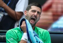 Lors d’une exhibition de charité, avant‐hier, RedFoo et Novak Djokovic se sont amusés comme des petits… fous dans un match de double Fish/RedFoo‐Piven/Djokovic. Le premier réussit un tweener très propre sur un lob, auquel répond, sur un autre lob, un autre tweener du second. Le point est conclu par une volée gagnante du copain d’Azarenka – qui se débrouille plutôt pas mal. Sam Sumyk, le coach de la Biélorusse, nous confiait l’autre jour que c’est un vrai passionné de tennis au niveau plutôt bon.