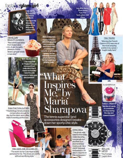 Pleine page consacrée à Maria Sharapova dans le numéro de mai de Glamour. Qu’est‐ce qui inspire la Russe ? On peut lire notamment : « Gagner Roland Garros, ça a été l’un des points les plus incroyables de ma carrière. Je me suis tellement battue. »
