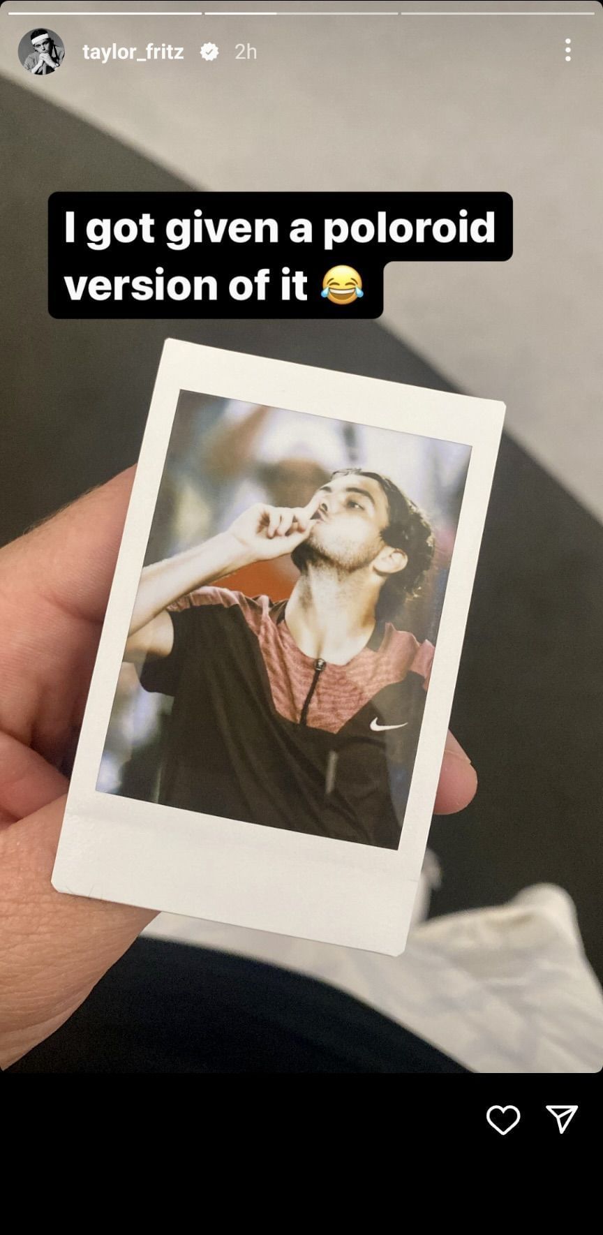 L’américain a en effet reçu un polaroid, comme on peut le voir sur sa story Instagram, de son chut iconique lors de sa victoire au deuxième tour de Roland‐Garros contre Rinderknech.