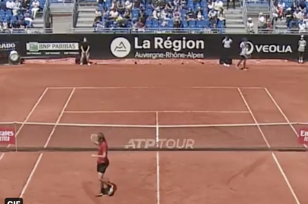 Oleg souligne sur Twitter que Lucas Pouille l’avait fait, mais avec les pancartes du tournoi de Marseille. Le smash de Stefanos Tsitsipas face à Lorenzo Musetti a lui vraiment touché un spectateur lyonnais après le rebond. Ce dernier évidemment très surpris a fait un petit plongeon pour éviter la balle. En vain. Le Grec s’est excusé. Être spectateur au premier rang n’est pas forcément une activité facile…