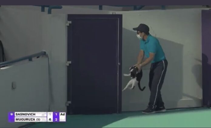 Durant le premier match de Garbine Muguruza en 2021 à Abu Dhabi, un chat s’est invité sur le court. Un membre de l’organisation a tenté de le sortir mais l’animal ne semblait pas vouloir manquer la victoire de l’Espagnole…