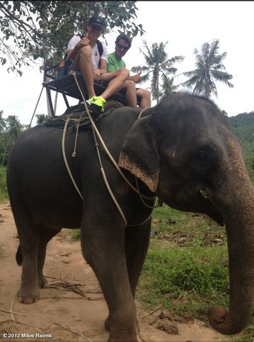 Ce brave Milos Raonic ne fait jamais les choses à moitié quand il part prendre un peu de vacances. Il n’est pas du genre à rester tout le temps sur la plage à se dorer la pilule. Non, le Canadien aime l’aventure ! Alors il monte sur des éléphants, comme ça, pour voir si ça peut être sympa ! Il a l’air d’apprécier remarque. L’éléphant aussi non ?
