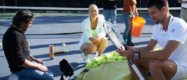 Comme ce n’est pas son métier, il faut évidemment que l’envie soit présente. C’est à nous de trouver les moyens pour qu’il se sente bien, investi d’une mission. Il doit prendre du plaisir à l’exercice qui lui est demandé. Bon, les joueurs ont aussi plus ou moins de talent… En 2011, qu’il s’agisse de Maria Sharapova, de Novak Djokovic ou d’Andy Murray, tous ont tenu à faire des photos avec leur téléphone pour conserver des souvenirs des plateaux de tournage. Tous m’ont demandé des images. Ca veut dire qu’ils s’y sont bien sentis. Ce n’était absolument pas une contrainte. Quand l’alchimie opère ainsi, tout devient très simple. Encore une fois, ces joueurs de tennis‐là ont pour eux d’être des instinctifs nés.