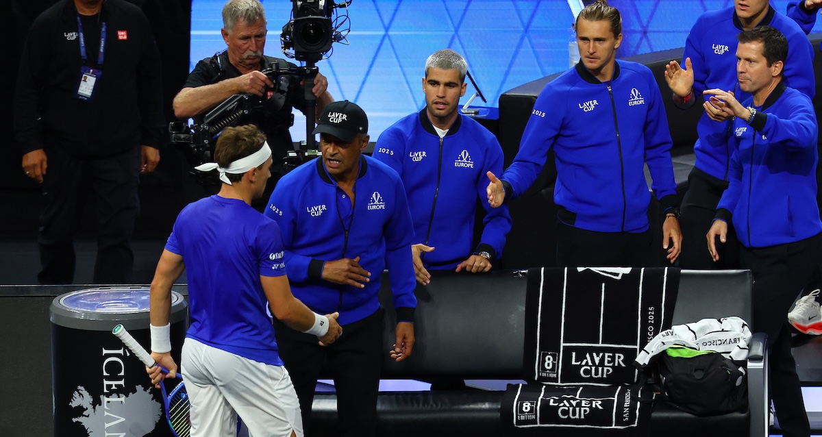 - Si la Team World gagne 1 match et l’Europe 3, ils termineront à 12–12 et joueront un set décisif (en double) à la fin de la soirée !