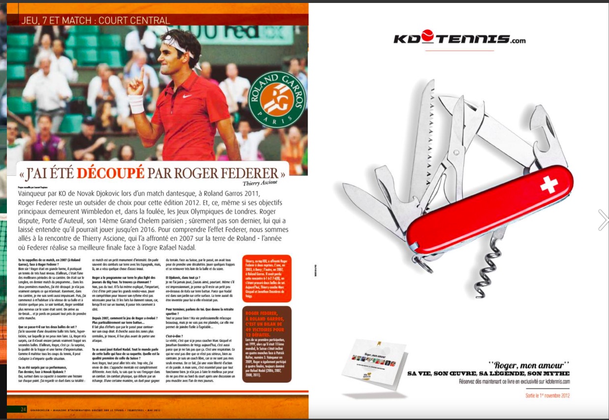 Dans le numéro 28, Thierry avait bien voulu revenir sur ce moment assez spécial où il avait été dominé en 2007 à Roland‐Garros par le Suisse (6−2, 6–1, 7–6 (6))
