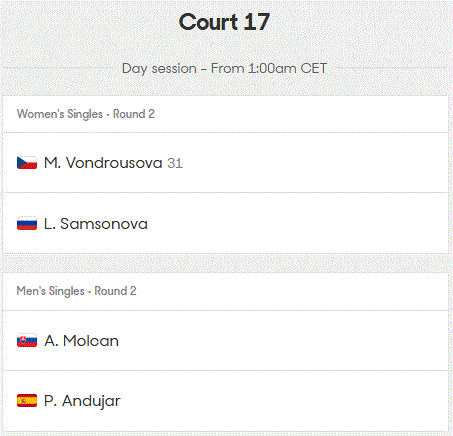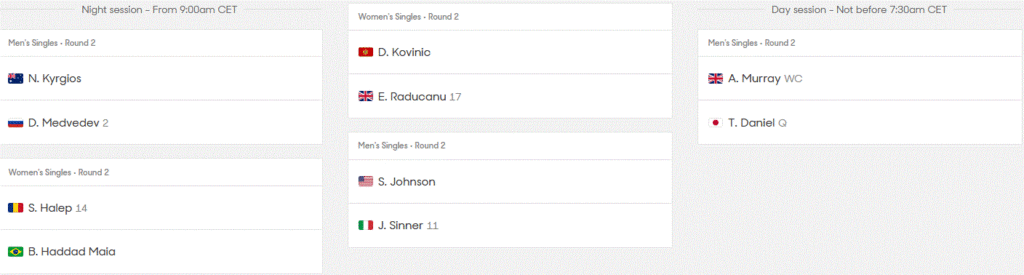 Tous les matchs sur tous les courts débutent à 1h, heure française.