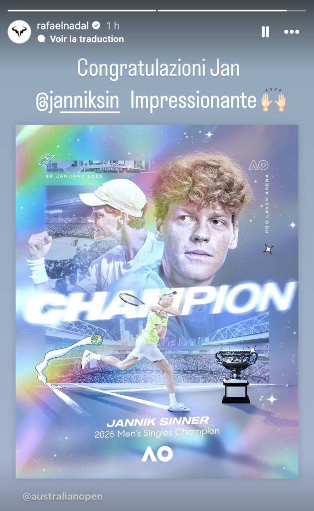 « Félicitations Jan. Impressionnant », a écrit l’homme aux 14 Roland‐Garros sur son compte Instagram.