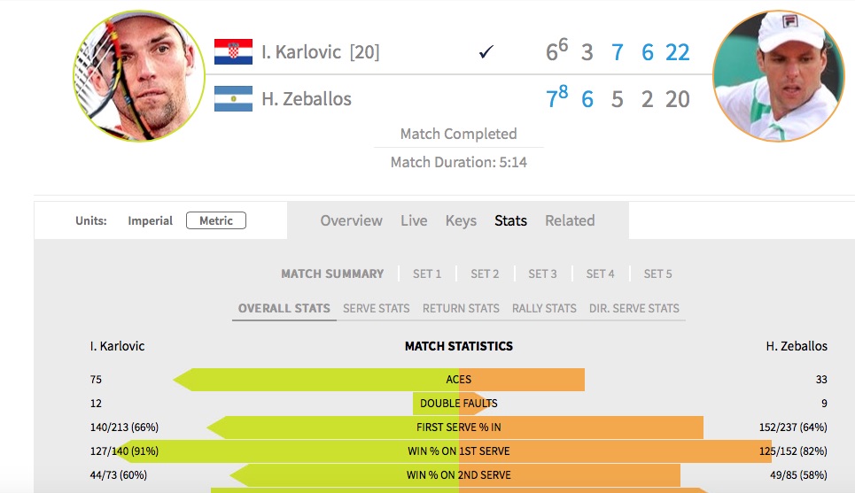 On vous invite vraiment à analyser la fiche de stats de fou d’Ivo Karlovic avec 75 aces, rien que ça…