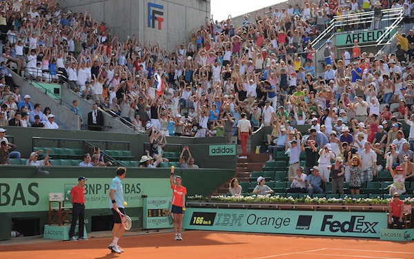 Bref, my Qatari is rich. On est foutu, je vous le dis. Reste ce stade, cette terre, ce rouge, ce blanc, c’était il y a pas si longtemps. A Montréal, après les Jeux Olympiques de 1974, ils ont transformé le vélodrome en Biodome, on peut y voir gambader des pingouins. En 2020, il se peut qu’un projet soit proposé pour le stade Roland Garros abandonné. Il n’y n’aura toujours pas de toit, mais on sera bien obligé d’accepter d’accueillir le Jubilé de Bob Sinclar.