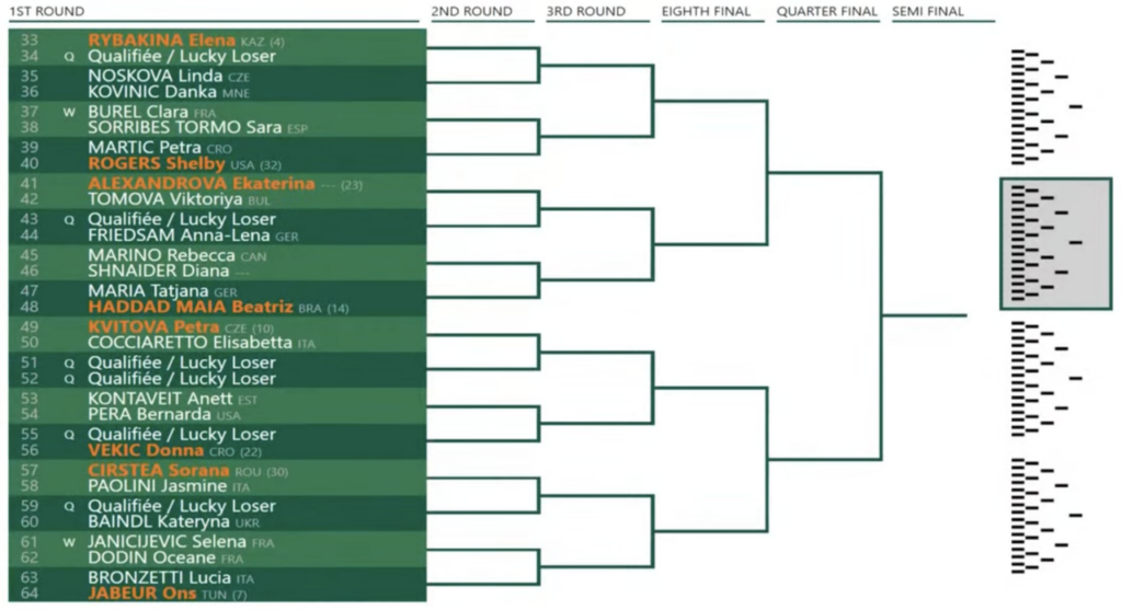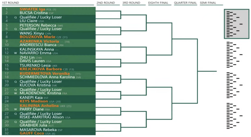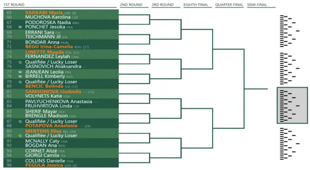 Découvrez l’intégralité du tableau féminin de l’édition 2023 de Roland‐Garros ci‐dessous :