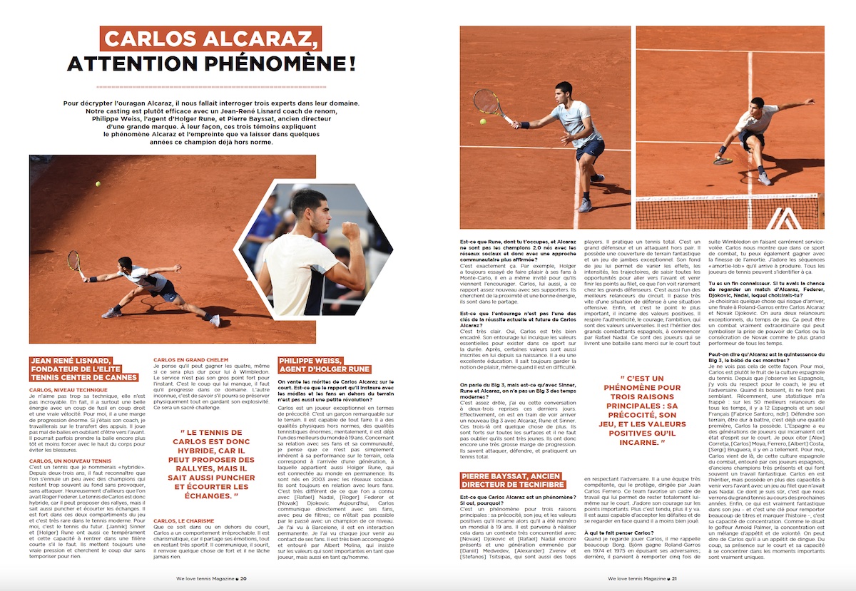 Le fondateur de l’Elite Tennis Center a bien voulu décrypter le jeu d’Alcaraz dans notre dernier numéro de We Love Tennis.