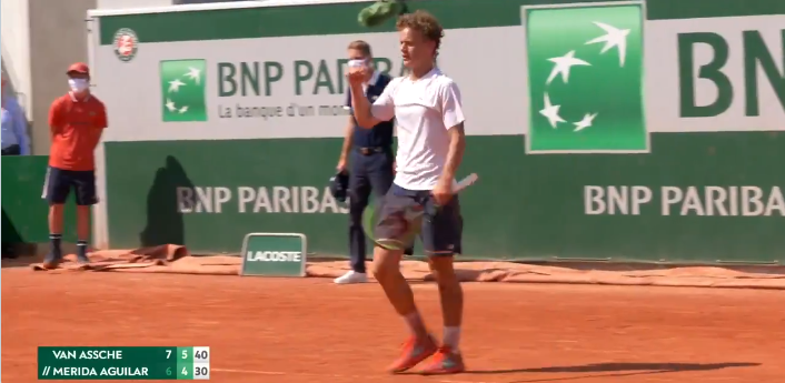 Pour la première fois depuis 1950, au moins, quatre joueurs français rempliront les quatre places en demi‐finales du tournoi juniors de Roland Garros 2021. Il s’agit d’ Arthur Fils, de Giovanni Mpetshi Perricard, de Sean Cuenin et de Luca Van Assche, dernier qualifié (voir vidéo ci‐dessous). L’un d’entre eux succédera à Geoffrey Blancaneaux au palmarès, titré en 2016.