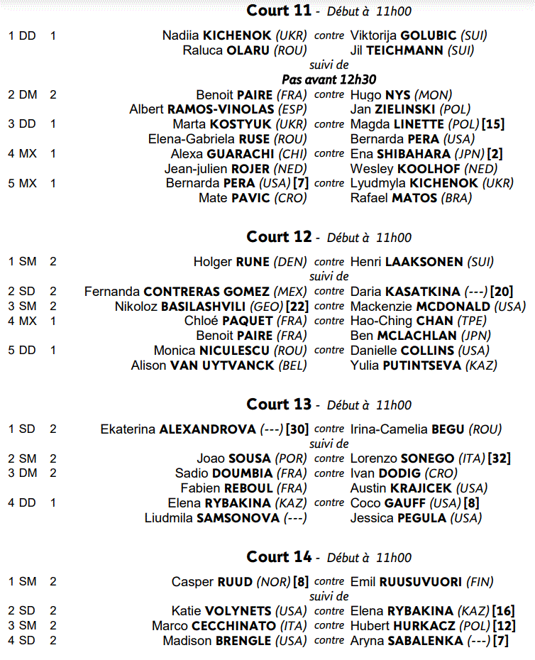 Découvrez le programme complet de la journée de jeudi à Roland‐Garros ci‐dessous :