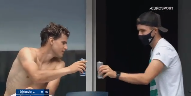 Au‐delà d’être un excellent joueur de tennis, Dominic Thiem est également un super communicant. En contrat avec la célèbre marque autrichienne Red Bull, le numéro 3 mondial a été aperçu par les caméras de télévision de l’US Open en train de trinquer à la Red Bull dans les tribunes du court Arthur Ashe au cours du match entre Novak Djokovic et Kyle Edmund. Surement pas une coïncidence tant les joueurs sont parfaitement au courant qu’ils sont filmés à la moindre occasion dans les gradins.