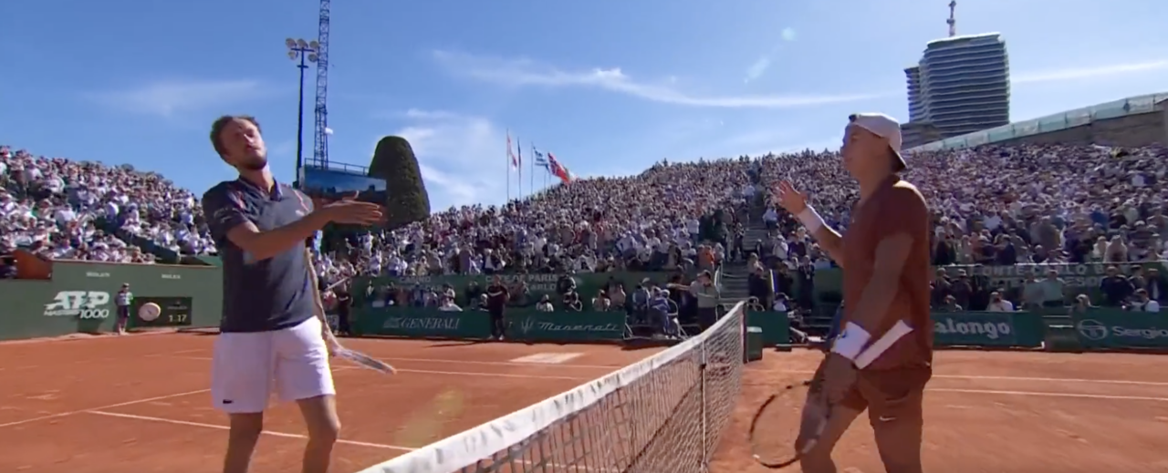 Sèchement battu par un impressionnant Holger Rune, ce vendredi en quarts de finale du Masters 1000 de Monte‐Carlo, le Russe avait encore de l’énergie pour se moquer avec malice d’Alexander Zverev, qui s’est fait remarquer ce jeudi soir en refusant de regarder Daniil dans les yeux après sa douloureuse défaite en trois manches.
