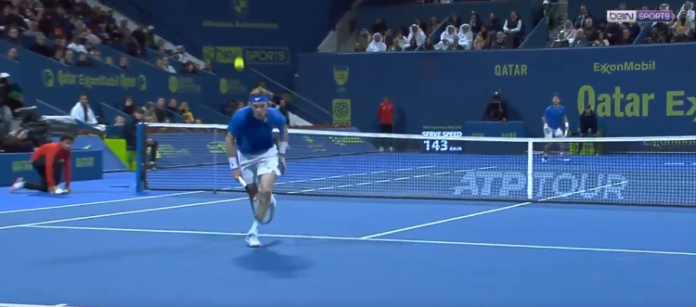Battu par un Andrey Rublev plus for que lui, Corentin Moutet a quand même pu faire admirer ses qualités avec ce lob parfaitement négocié.