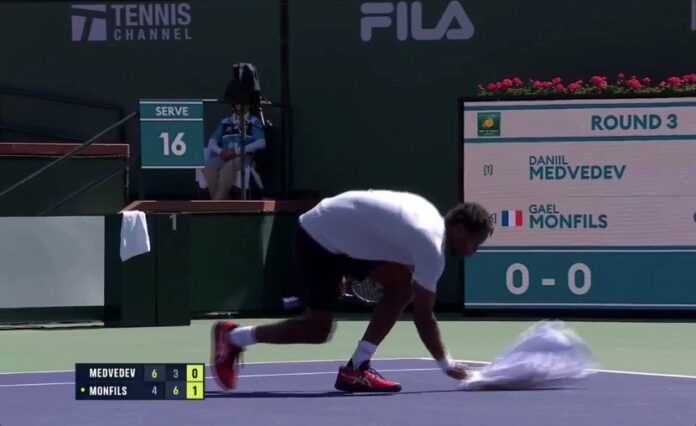 Début du 3ème set, Daniil Medvedev est un peu tendu.